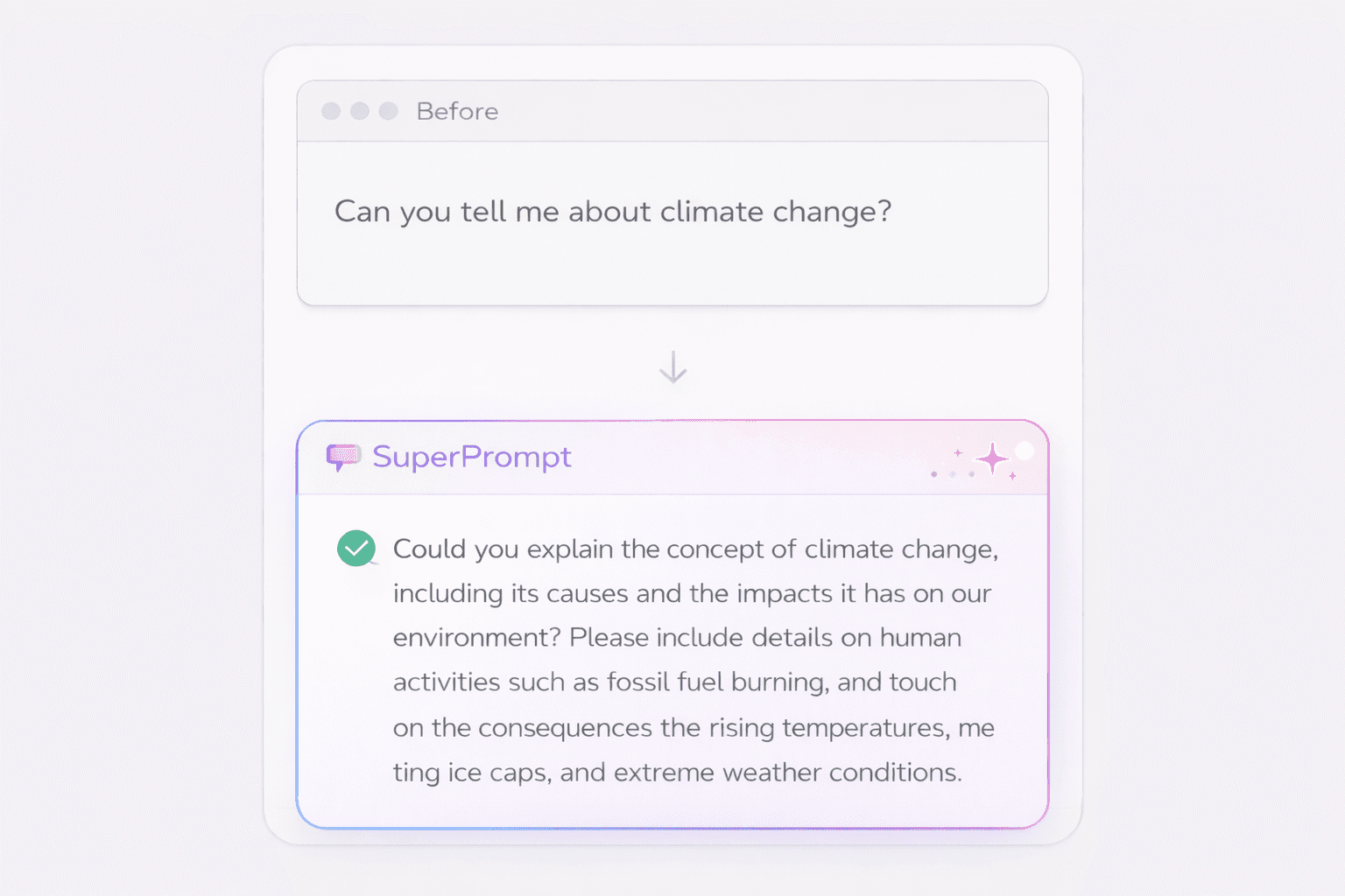 Stop guessing how to phrase things. Write naturally and let SuperPrompt turn your ideas into prompts AI actually understands.